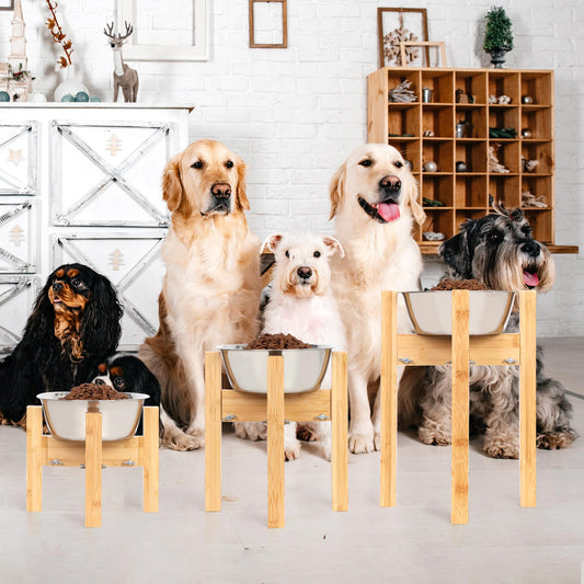 Adjustable Bamboo Elevated Dog Bowls – HTB Natural Pet Feeding Station